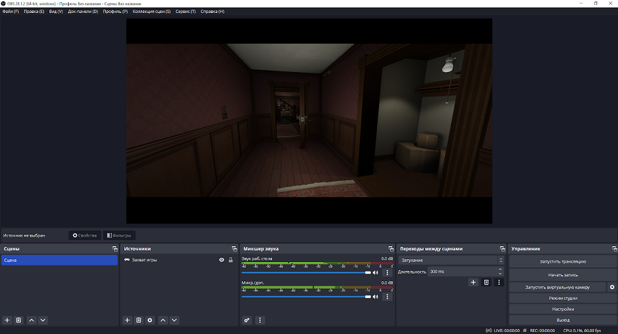 - Поддерживает неограниченное количество сцен — пользовательских настроек источников и параметров захвата.