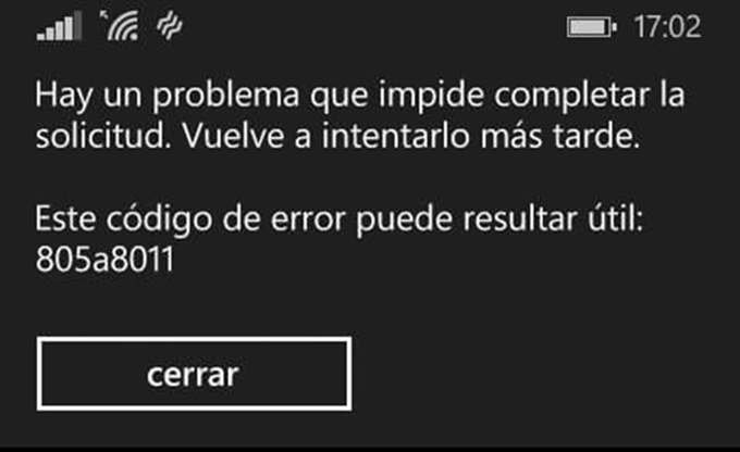 Код 805а8011 что за ошибка телефона Нокиа Люмия Windows