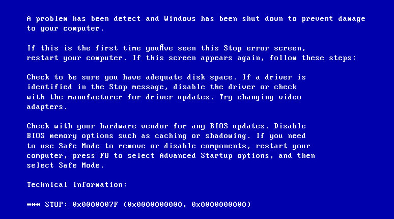 Исправить 0x0000007f ошибку экрана смерти Windows 7 и XP