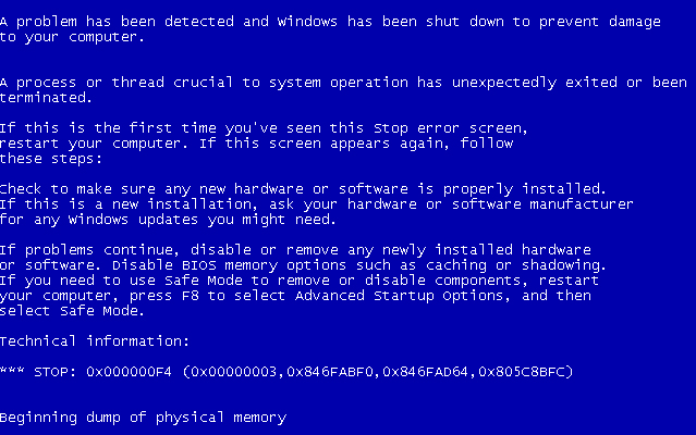 Исправить 0x000000f4 ошибку при синем экране Windows 7 и XP