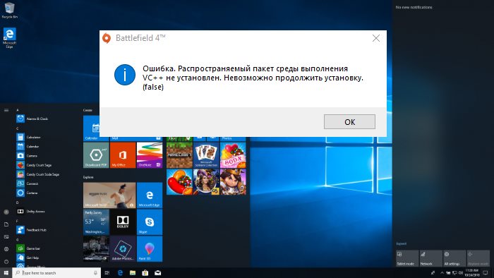 Ошибка. Распространяемый пакет среды выполнения VC++ не установлен