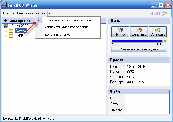 - Умеет записывать CD/DVD диски, образы дисков, очищать диски