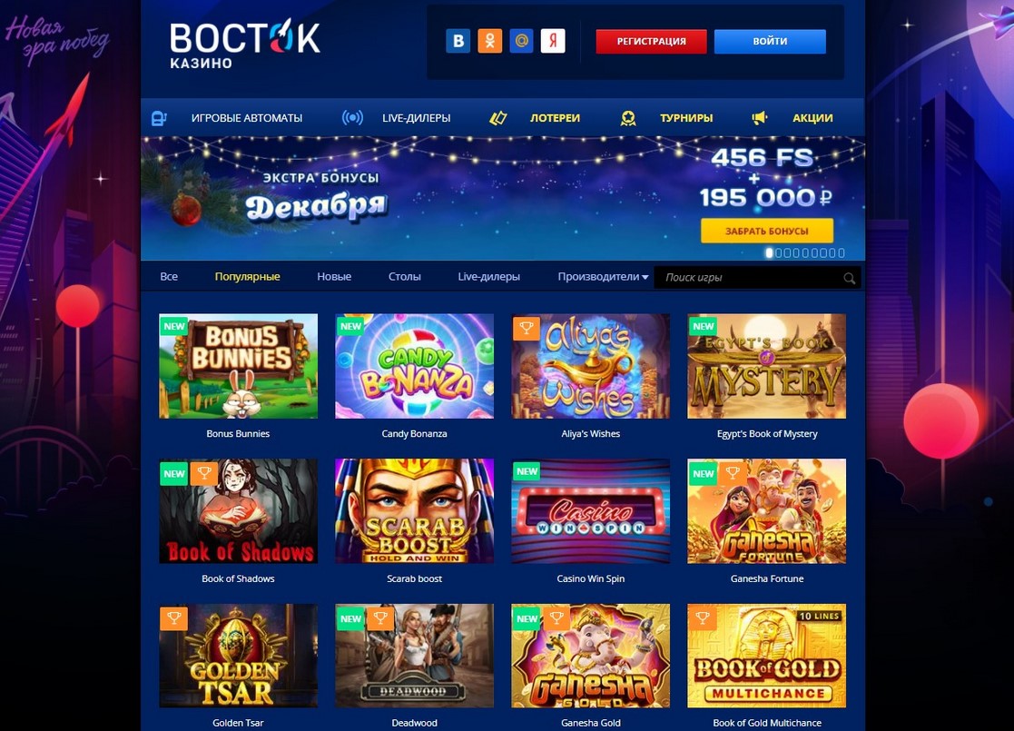 Казино Vostok является на сегодняшний день одним из самых востребованных игорных заведений. Сайт этого казино радует глаз красивой графикой, а также удобным пользовательским интерфейсом. Посетители могут играть в казино в онлайн режиме.