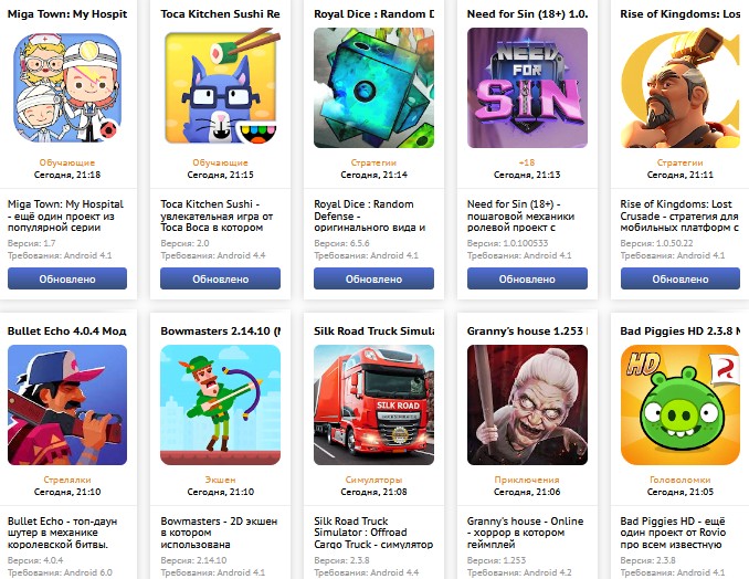 На сайте 5mod.ru можно скачать популярные игры на Android. Причём платить деньги за такие игры совершенно не надо. Именно здесь можно скачать игры на телефоны, планшеты без всяких ограничений. На сайте 5mod.ru можно найти игры следующих жанров:
