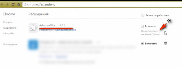 - Изменяет настройки браузеров: в Firefox, Internet Explorer, Google Chrome модуль-adware устанавливает расширение, как правило, с одноимённым названием — Advanceelite.