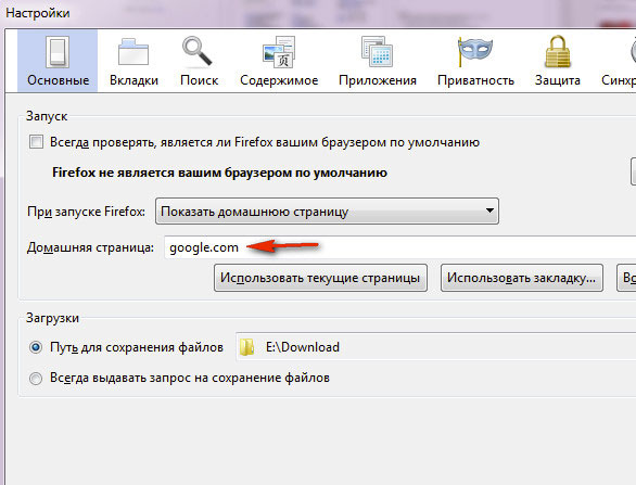 3. Откройте настройку домашней страницы. При необходимости удалите вредоносную ссылку и впишите адрес доверенного поисковика.
