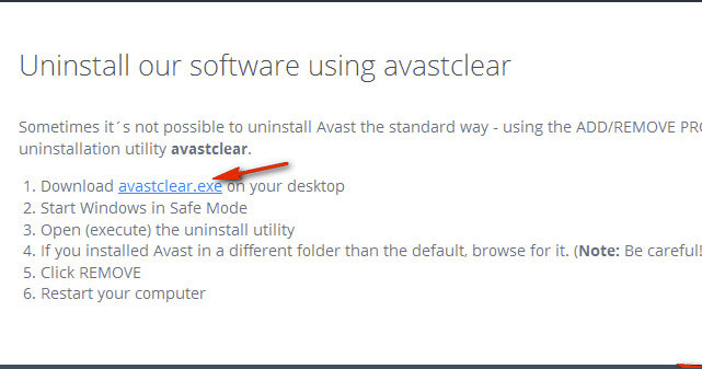 3. На странице «Утилита для удаления Avast», в первом пункте списка, кликните avastclear.exe.