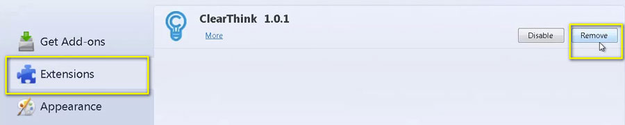 Чтобы удалить Clearthink, выполните нижеописанные действия.