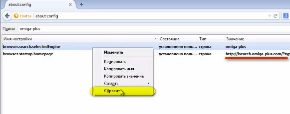 Инструкция по удалению Omiga-plus.com в ОС Windows