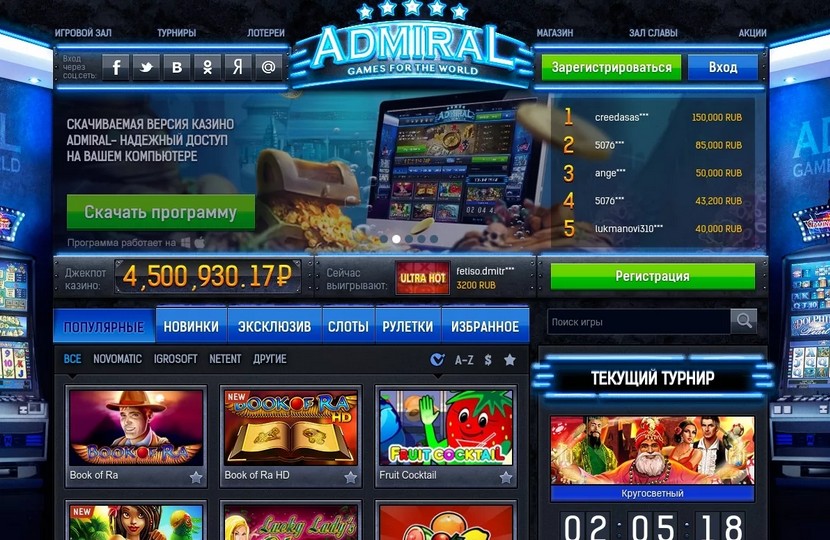В популярном онлайн-казино «Адмирал» пользователи всегда могут с лёгкостью поиграть в игровые слоты и весело провести время. Если Вы давно ищете для себя подходящее хобби, которое не будет отнимать много сил и времени, то казино Адмирал – это отличный вид времяпрепровождения, который вдобавок помогает улучшить своё благосостояние гемблерам (или игрокам в азартные игры в современных онлайн-казно). Данное казино имеет простой официальный сайт с интуитивно понятной навигацией для каждого игрока, лёгкой регистрацией, которая не отнимает у пользователей много времени, а всего несколько минут, а также щедрая система бонусов и привилегий. Также на официальном сайте пользователи могут найти 10 важных и главных советов, как хорошо играть в казино Адмирал. Как говорится, Вам и карты в руки. Все козыри уже есть, теперь дело только за выигрышем! Играйте и выигрывайте денежные призы в казино Адмирал, даже не выходя из дома!