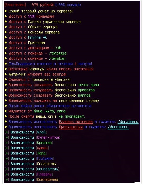 20.11.2018 в 14:35 была приобретена привилегия: «Властелин» для пользователя: steep_maks,