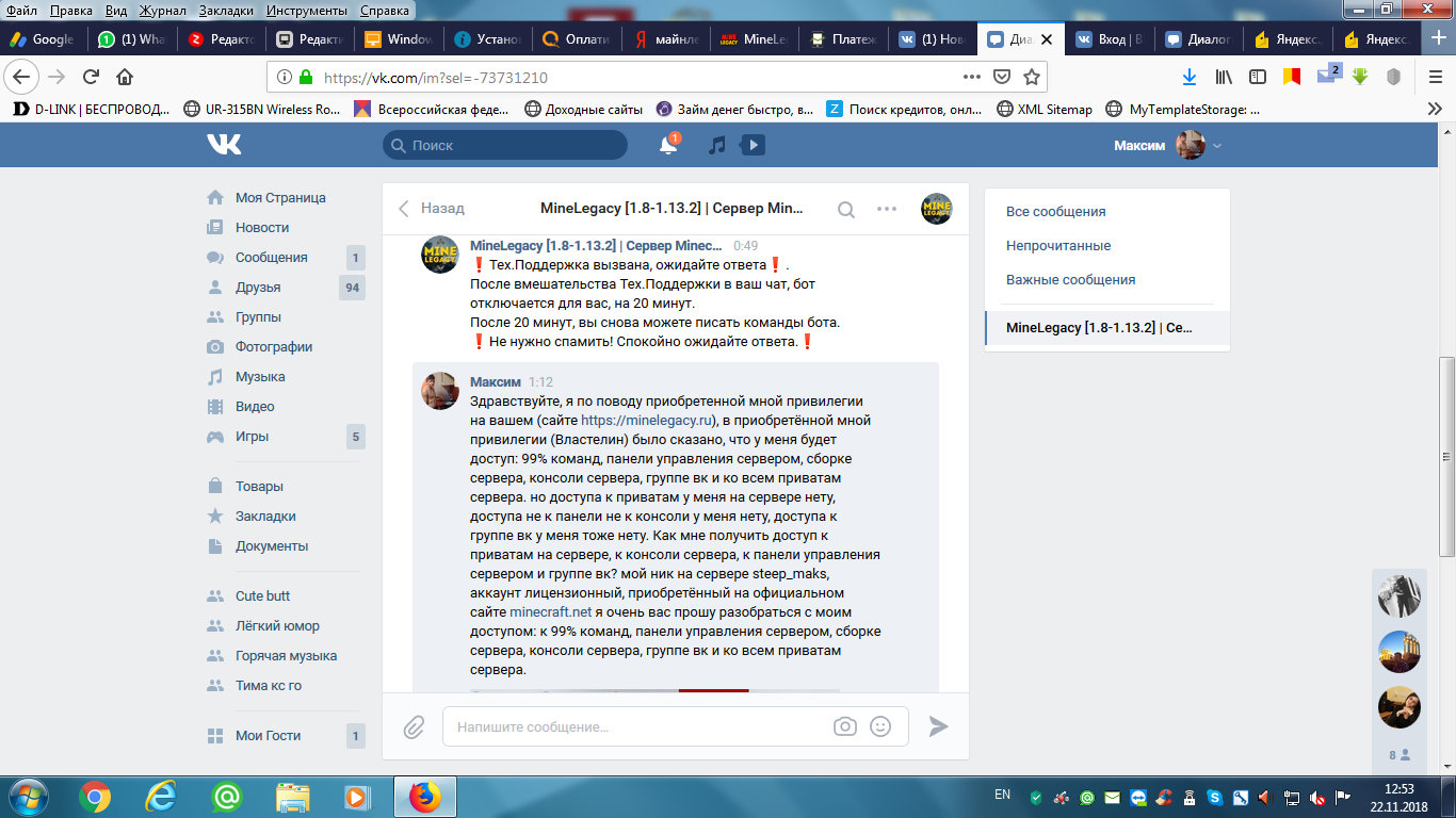 Пытались связаться с продавцом через чат (ссылка на чат в вк на сайте): https://vk.me/minelegacy .