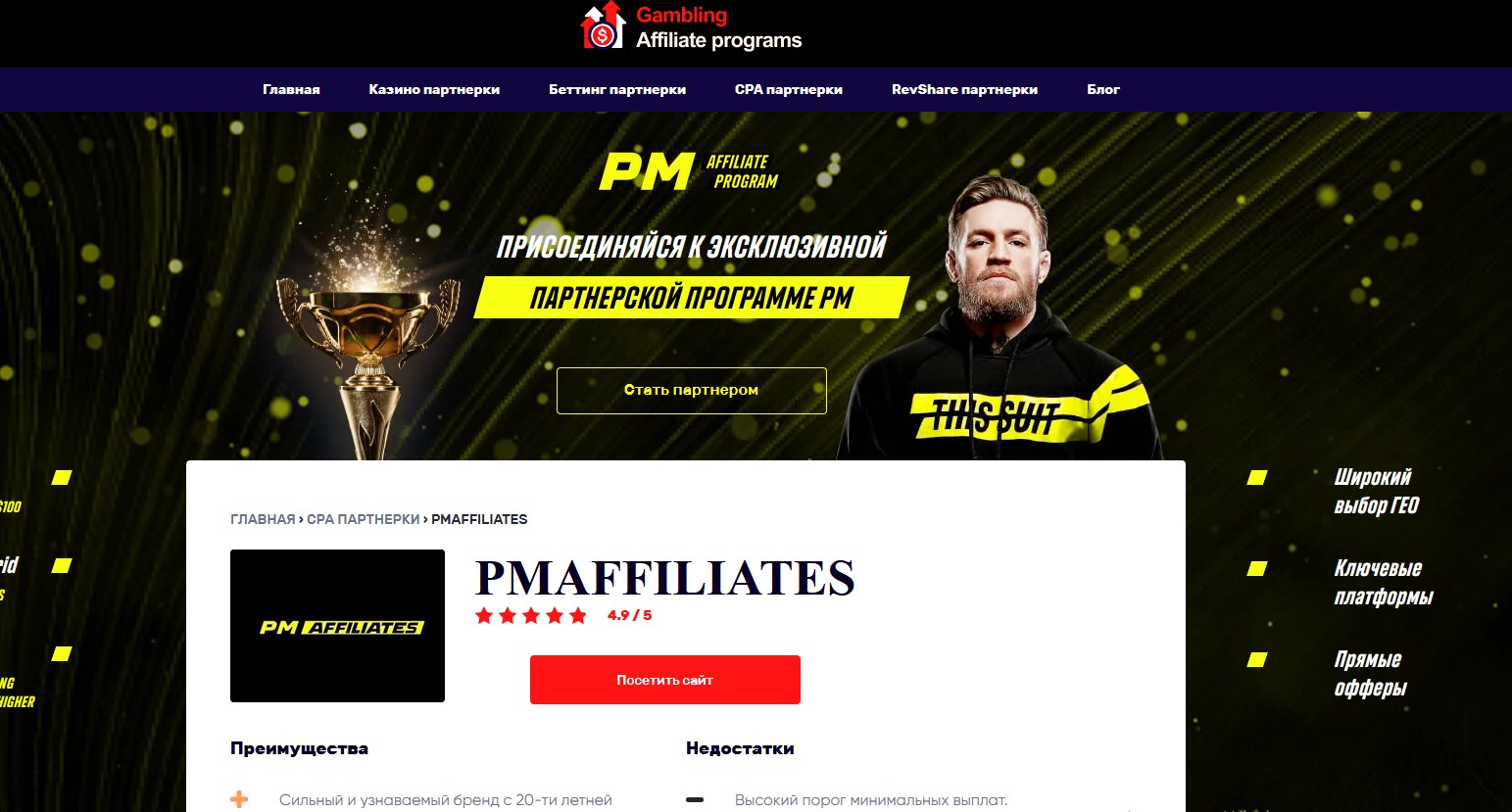 Существует множество различных партнерских программ. Вероятно, вы могли бы найти партнерскую программу практически для каждой ниши на земле. Партнерская программа PMAffiliates – одна из самых лучших партнерских программ для новичков и профессионалов. Данная компания гарантирует надежность и безопасность.