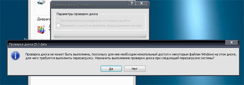 После этого следует перезагрузить Windows. Во время загрузки начнется проверка диска на ошибки и их исправление.