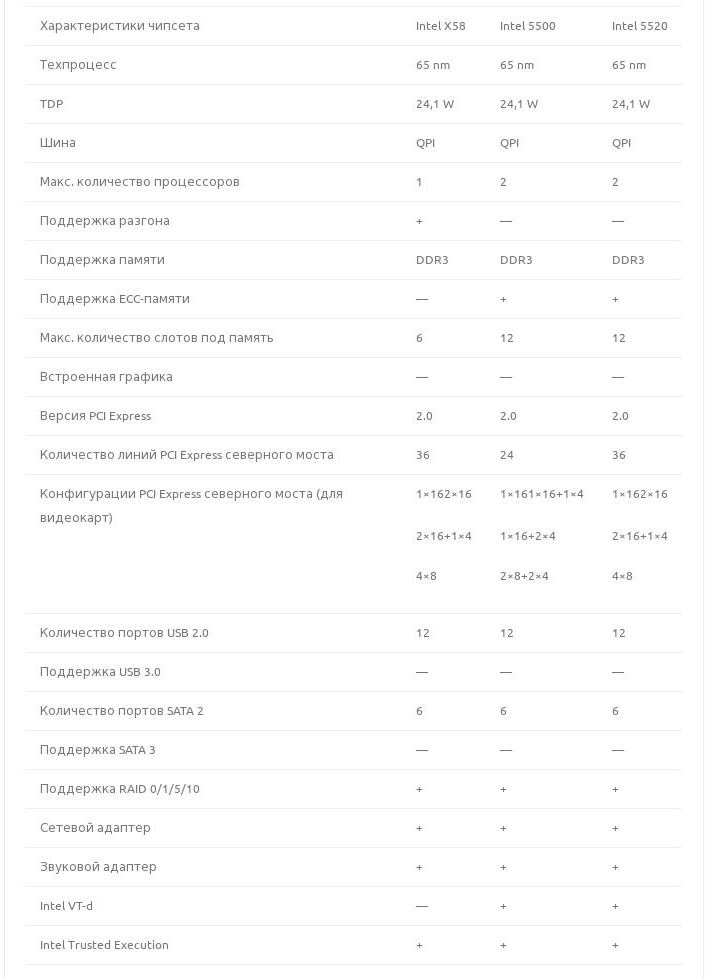| Характеристики чипсета | Intel X58 | Intel 5500 | Intel 5520 |