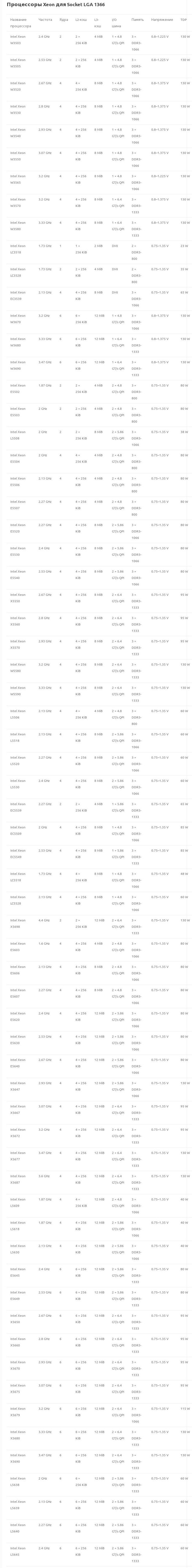 Эта же таблица (Процессоры Xeon для Socket LGA 1366) в виде картинки