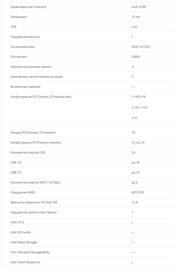 Эта же таблица (чипсет Intel X299) в виде картинки