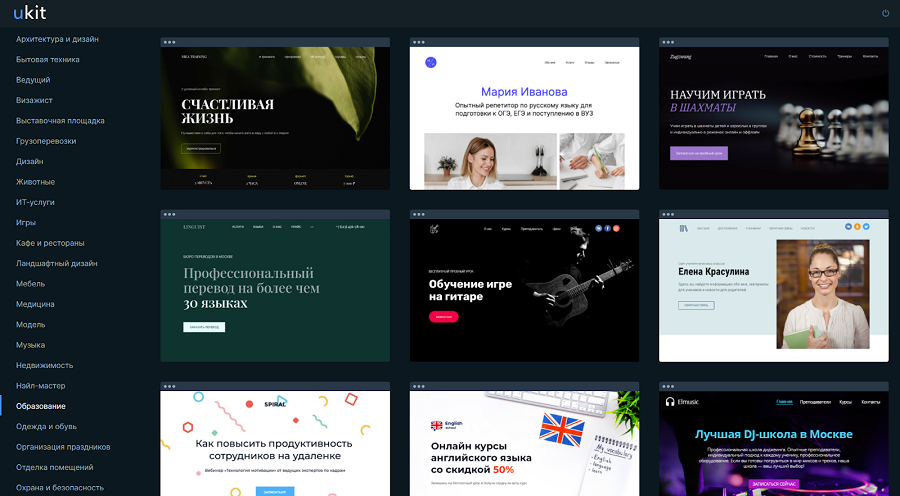 Конструктор uKit – облачный сервис для разработки бизнес-проектов, поэтому он идеально подойдет для создания и продвижения сайтов по продаже онлайн-курсов. Конструктор ориентирован на новичков сайтостроения, имеет максимально простой интерфейс, удобную панель управления и визуальный drag and drop редактор.