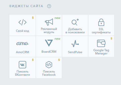 - виджет интернет-магазина для настройки прямых продаж и приема онлайн-платежей;
