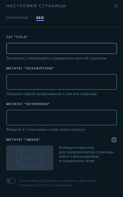 В конструкторе имеется достаточно инструментов для seo-оптимизации сайта: метатеги для страниц, блоков и изображений, настройка заголовков и ЧПУ страниц, подключение домена второго уровня, 301 редирект. Перед регистрацией сайта в поисковых системах можно проверить уровень оптимизации с помощью визарда Продвижение.